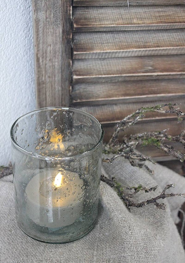 Bubbelglas windlicht, mooi te combineren met de grotere variant. Ook leuk om toe te voegen aan een krans.