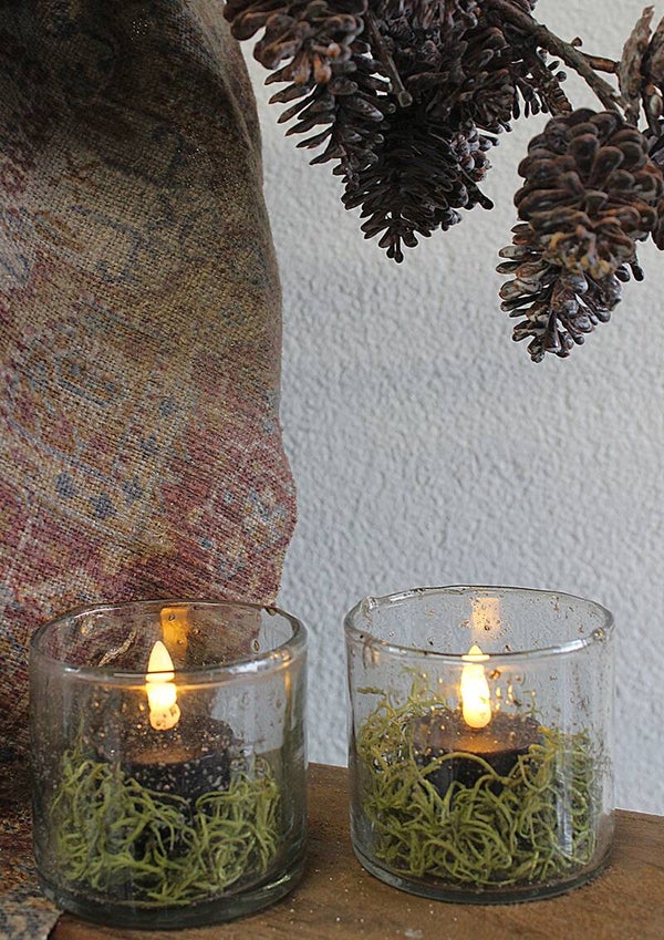 Leuke, lage bubbelglaasjes. Geschikt voor een waxinelichtje en perfect te combineren met de stompkaarskandelaars, zoals te zien op de sfeerfoto’s.
