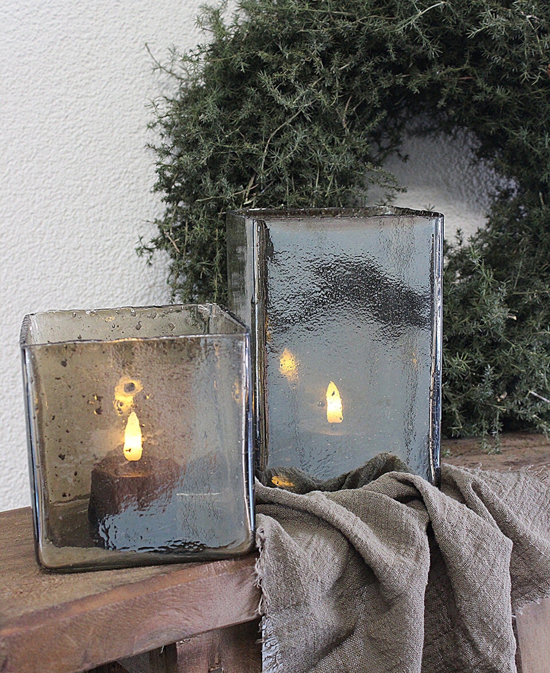 Elk windlicht is uniek dankzij het ambachtelijke proces van handgeblazen bubbelglas — geen enkel exemplaar is precies hetzelfde.