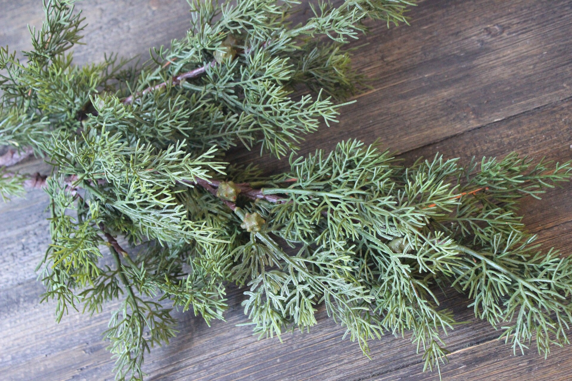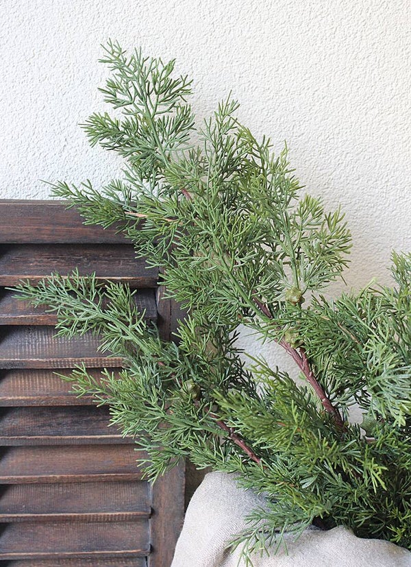 Decoratieve kunsttak met de natuurlijke uitstraling van de jeneverbes. Voorzien van fijne naaldjes en subtiele besjes, perfect voor een sfeervolle toevoeging in kransen, schalen of als losse decoratie zoals in een pot of vaas.