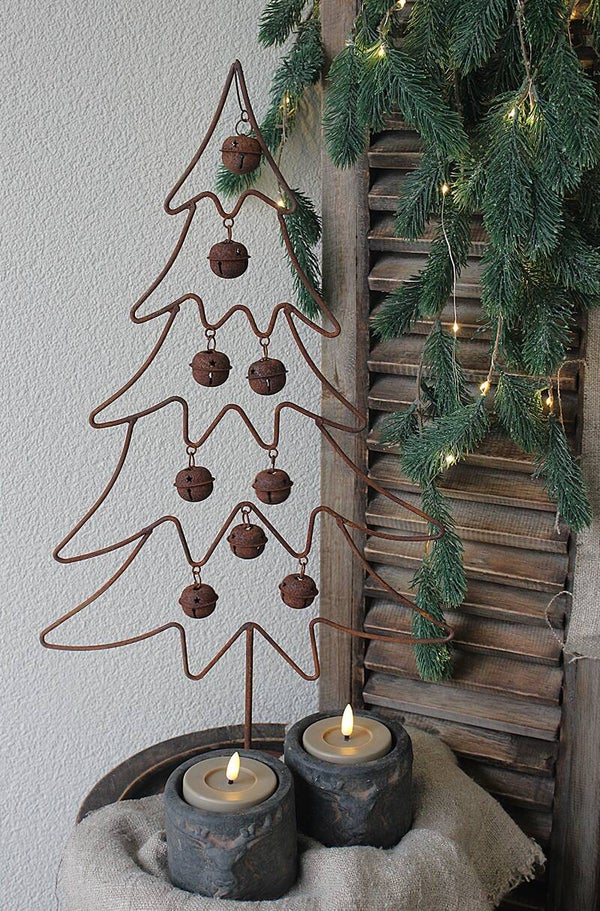 Deze roestkerstboom straalt pure kerstsfeer uit. De kleine roestbelletjes zorgen voor een speels en charmant detail, terwijl de warme roesttinten een rustieke uitstraling geven.