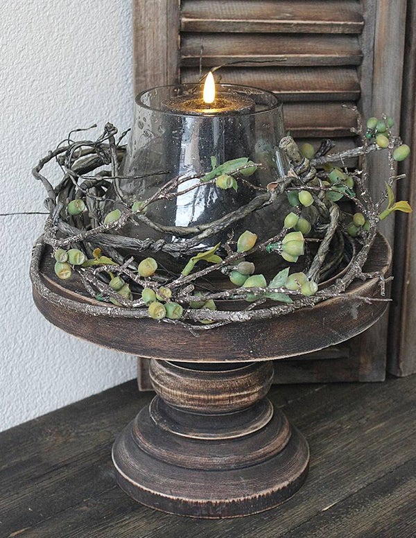 Sfeervolle takkenkrans bestaande uit één grote, buigzame kronkeltak die gemakkelijk in een ronde vorm gebogen kan worden, aangevuld met twee takken groene besjes voor een natuurlijke uitstraling.