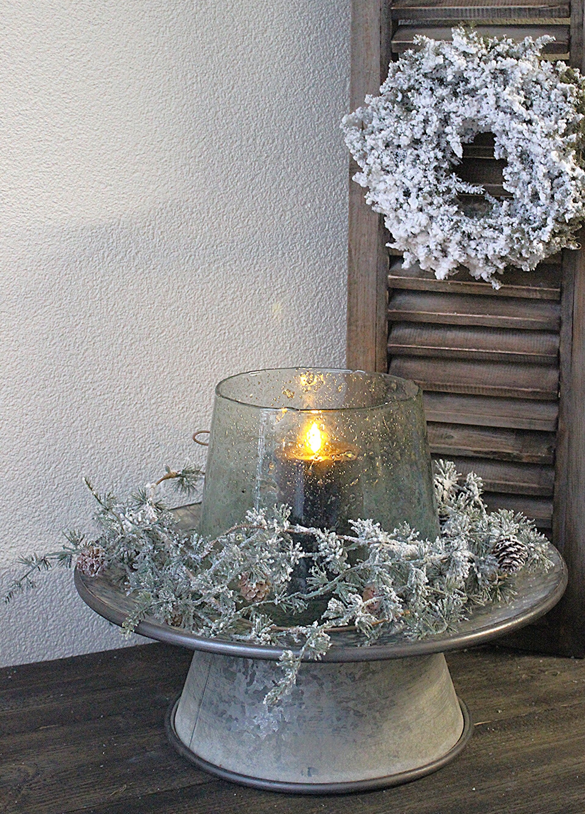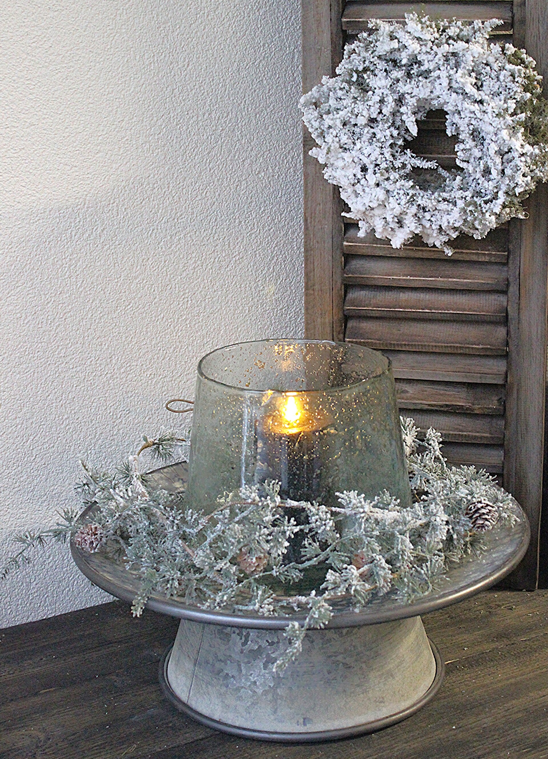 Groot zinken plateau op voet. Een prachtig item met eindeloze decoratiemogelijkheden. Het plateau heeft een gehamerde structuur, wat zorgt voor een mooi verweerde en karaktervolle uitstraling.