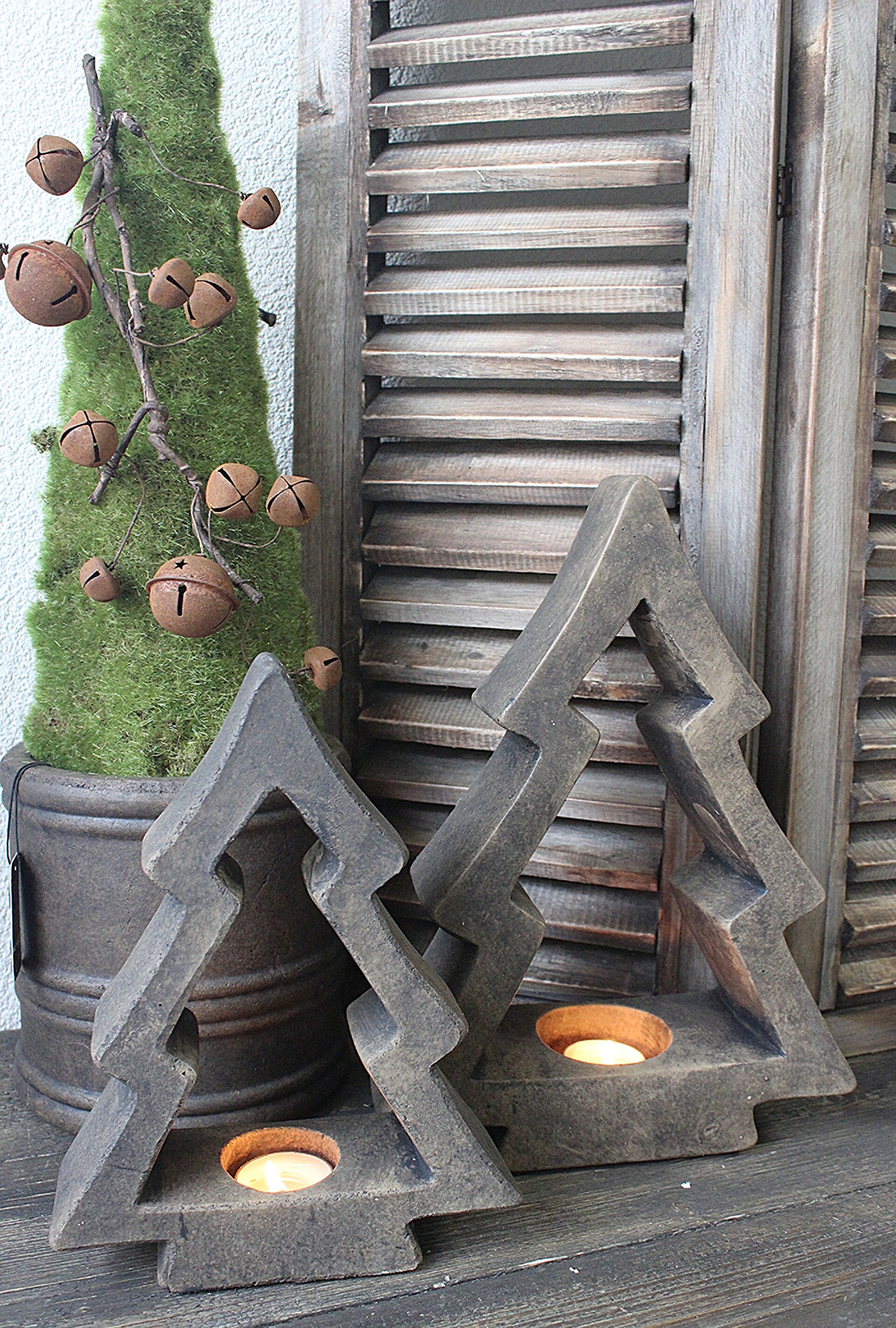 Deze stoere stenen kerstbomen zorgen voor extra sfeer met een waxinelichtje. Verkrijgbaar in twee formaten, leuk als set.