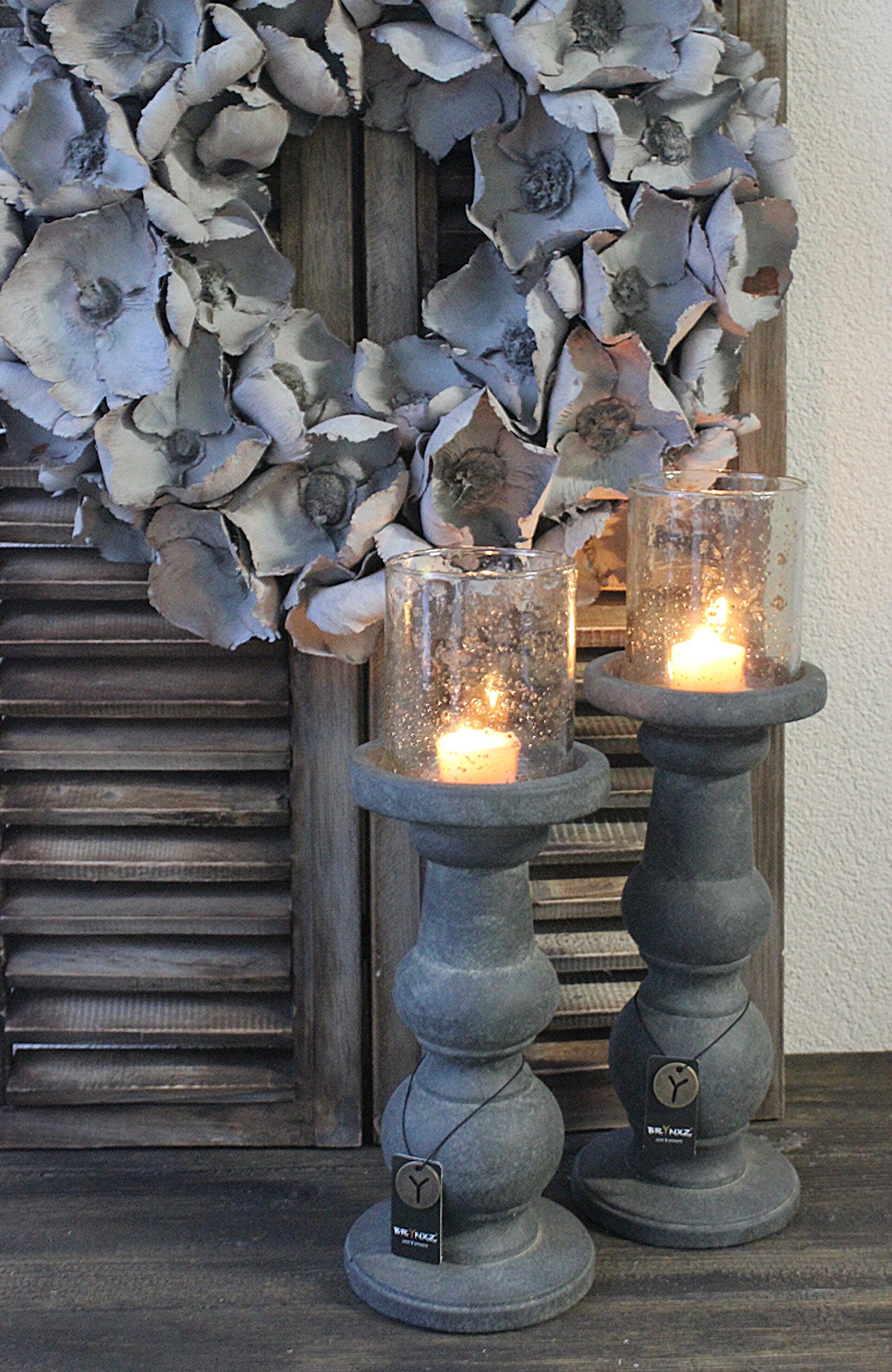 Stenen kandelaars uit de serie Majestic Vintage. Verkrijgbaar in twee maten.