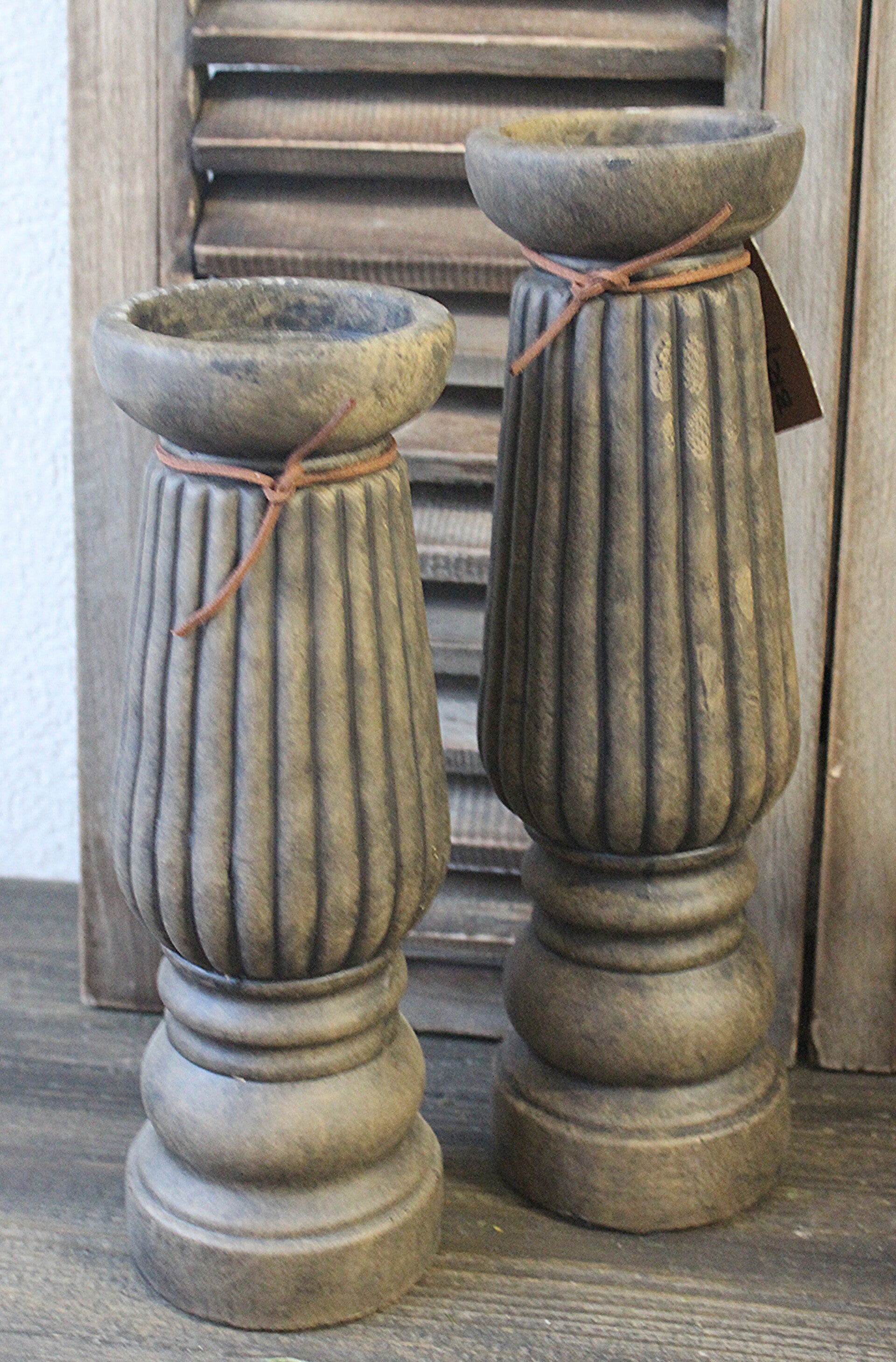 Stoere, robuuste kandelaars uit de kleurserie Majestic Brown.